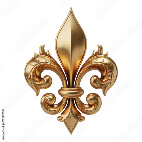 Golden Fleur de Lis Symbol with Ornate Swirling Details Keywords: fleur de lis, golden, symbol, ornate, swirling, decorative isolated on a transparent background