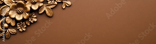 Golden Floral Corner: Elegant gold floral ornaments arranged in a corner on a rich brown background, creating a sophisticated and luxurious design element, perfect for invitations.