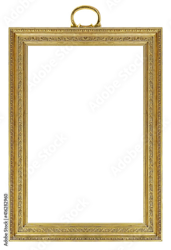 Golden frame for paintings, mirrors or photo isolated on white background