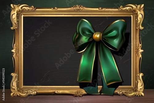 Golden Frame with Color Ribbons and Flowers on Dark Background – Elegant, Decorative Template for Design, Greetings, and Celebrations