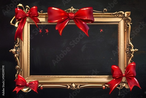 Golden Frame with Color Ribbons and Flowers on Dark Background – Elegant, Decorative Template for Design, Greetings, and Celebrations