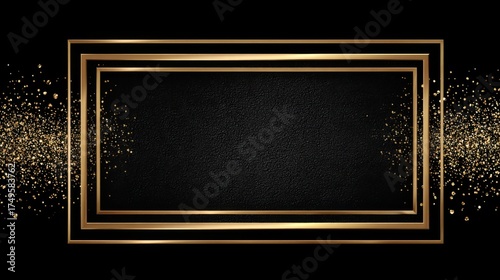 Golden frame with glitter on black,