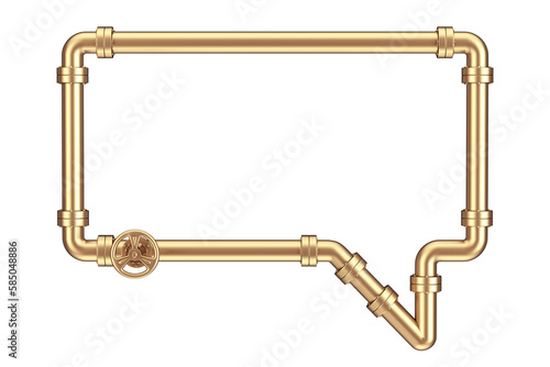 Golden Gas Pipeline with Valve in Shape of Speech or Think Bubble. 3d Rendering
