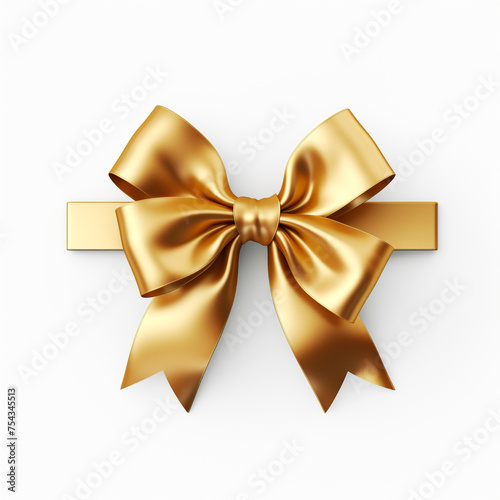 golden gift bow on white background сreated with Generative Ai