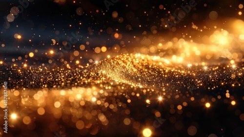Golden glitter abstract background with glowing particles