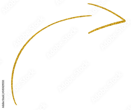 Golden glitter hand-drawn retro shapes. Arrow, wavy lines, Curve line