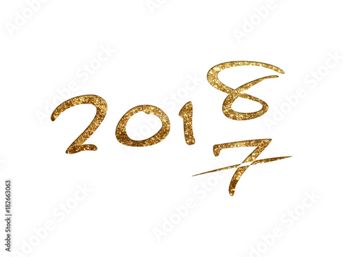 Golden glitter isolated hand writing word year 2018