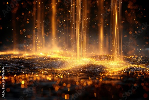 Golden Glitter Rain: Sparkling Particles Over Abstract Background