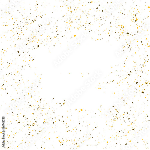 Golden glitter shine texture on a white background. Golden explosion of Confetti. Golden abstract particles on a light background. Isolated Holiday Design elements. Vector illustration.
