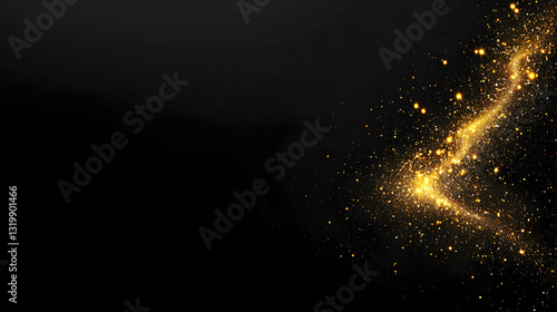 Golden Glitter Sparkles Trail On Dark Background With Festive Celebration Magic Effect