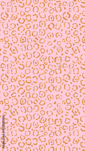 golden glittering leopard pattern on pink cosmetic and fashion background, luxury shiny gold vertical social media design element