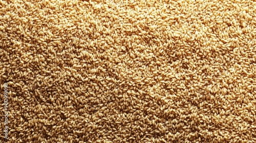 Golden grains of basmati rice in a uniform arrangement, smooth, elongated shapes aligned perfectly. Delicate sheen on each grain reflecting soft light, adding to a subtle, harmonious texture.