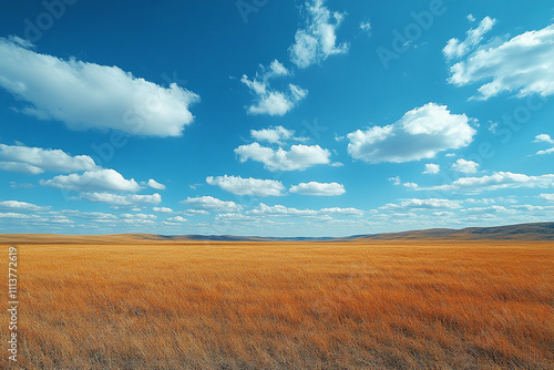 Golden Grassland Under a Vast Blue Sky