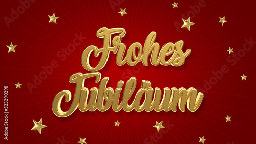 Golden Happy Anniversary in German, Frohes Jubiläum. 3d Illustration.
