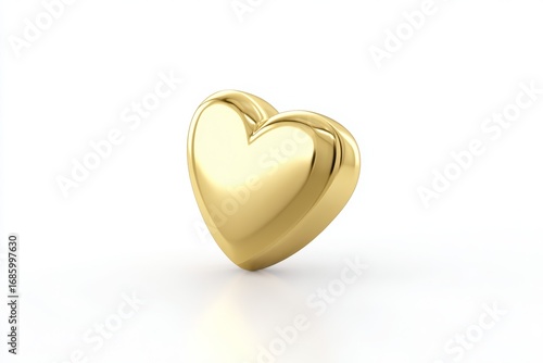 Golden heart shaped object on white background reflecting light