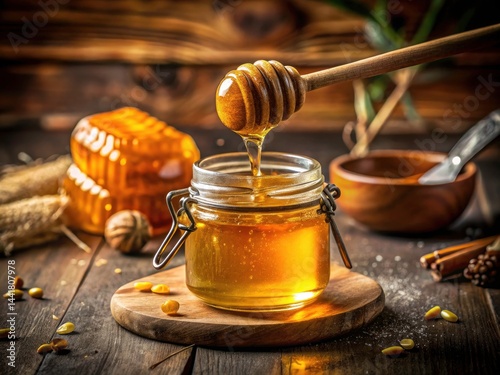 Golden Honey Dripping: Stunning Photography of Honey Jar, Sweet Treat, Dripping Honey, Honeycomb, Natural Honey, Liquid Gold, Delicious Honey