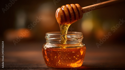 Golden Honey Pouring into Jar Sweet, Natural, and Delicious