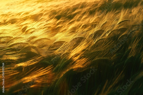 Golden Horizon: Scenic Sunset Over Expansive Barley Fields in a Tranquil Agricultural Landscape