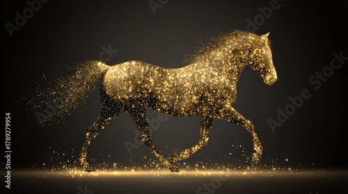 Golden Horse Silhouette Running Across Sparkling Particles, Symbolizing Success and Prosperity in a Vibrant Setting