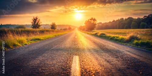 Golden Hour Country Road Blur: A country road bathed in the warm light of the golden hour, with a dreamy, blurred effect.
