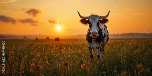 Golden Hour Cow in Pasture