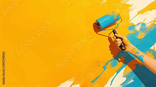Golden Hour Creation, A Hand Holding a Paintbrush, Painting on a Yellow Canvas, anime wallpaper.