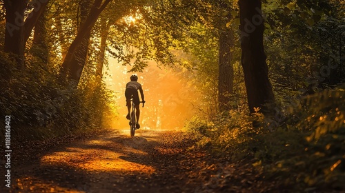 Golden Hour Cycling Through Enchanted Forest Pathway