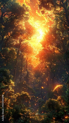 Golden Hour Forest: A Dreamy Sunset Landscape