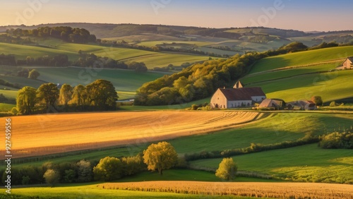 Golden Hour Illuminates Peaceful Countryside Farm
