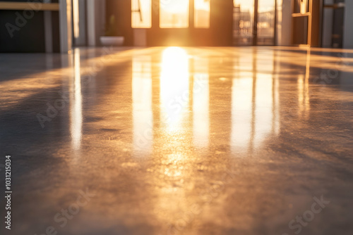 Golden Hour Reflections on Concrete Floor Illustration