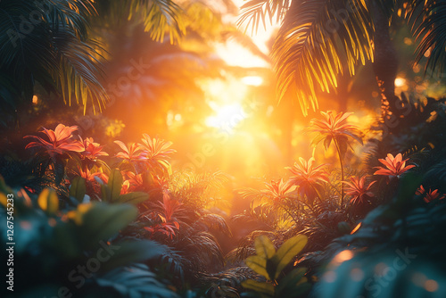 Golden Hour Serenity, A Sun-Kissed Tropical Paradise Beckons Viewers