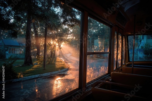 Golden hour through bus windows