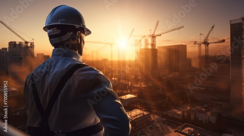 Golden Hour Vision: Inspiring Engineer Embraces Construction Site's Potential at Sunset