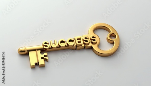 Golden key inscribed with 'Success' symbolizes achievement and opportunity on a plain background.