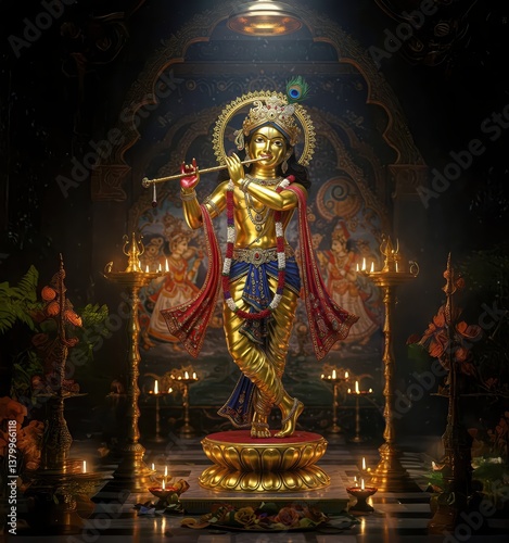 Golden Krishna Statue Radiating Divine Grace on Janmashtami