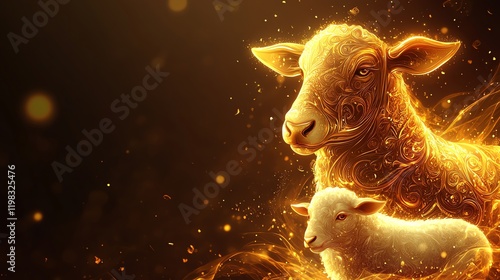 Golden Lamb and Ewe: Intricate Filigree Artwork