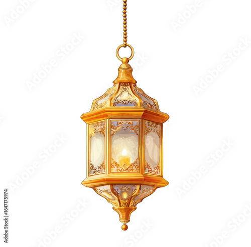 Golden lantern hanging by chain
