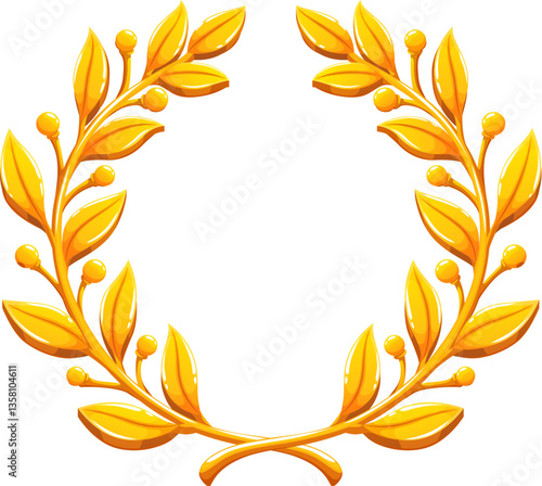 Golden laurel wreath badge for game asset and heraldic symbol, vector cartoon icon. Laurel wreath of golden olive leaves branch with shiny gold for best award or winner triumph reward of game asset