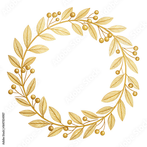 Golden Laurel Wreath Elegant Design Element Isolated On Transparent Background