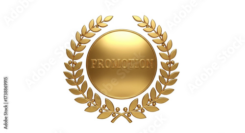 Golden laurel wreath emblem with oval blank space isolated on transparent background