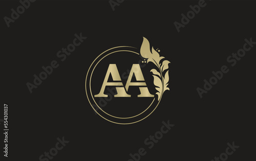 Golden leaf and circle logo design vector. Golden beauty logo and business symbol vector design