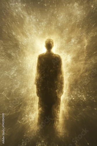 Golden light envelops a shadowy human figure.