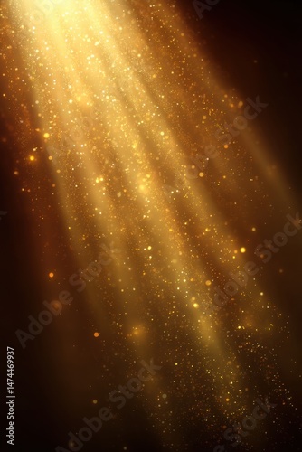 Golden Light Streaks Downward Abstract Background Shining Sparkles Bokeh Effect Festive Elegant Warm Glow