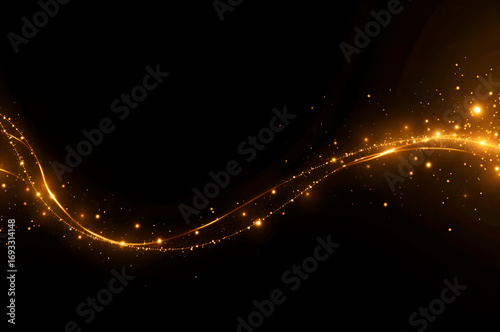 Golden Light Trail Abstract Background with Sparkling Particles