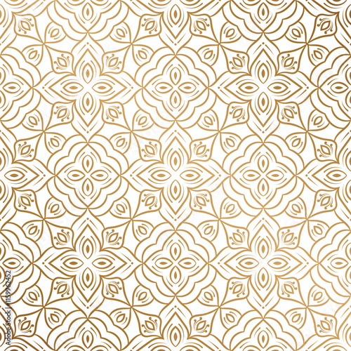 Golden luxury seamless vector pattern. Arabic Islamic Gold Ramadan floral or linear flower ethnic style tile pattern for Wedding invitation card