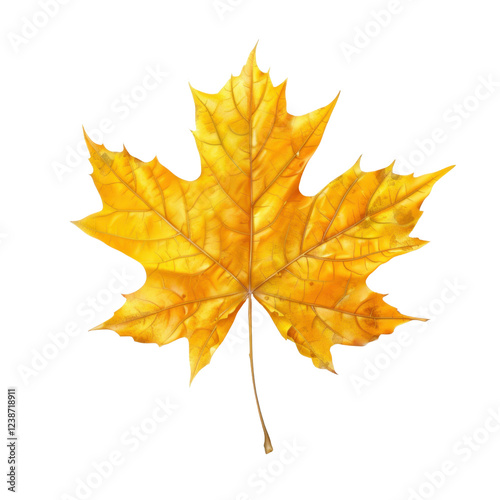 Golden maple leaf showcasing vibrant autumn colors, highlighting intricate veins and textures, perfect for seasonal themes and nature inspired designs