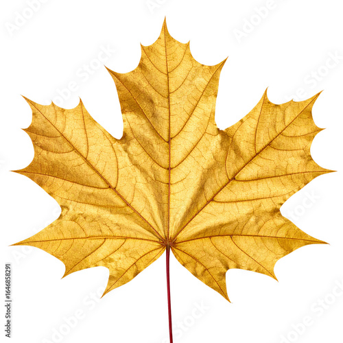 Golden maple leaf with vibrant autumn colors, isolated on a white background, capturing the beauty of the fall season