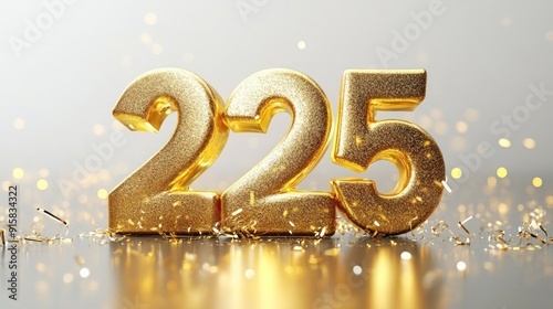 Golden Number 225 with Glitter