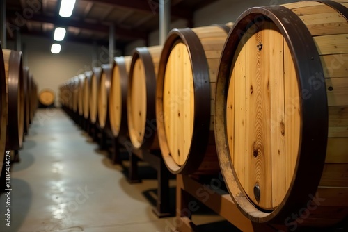 Golden oak whiskey barrels inside aging facility, close-up texture, whiskey barrel, barrel