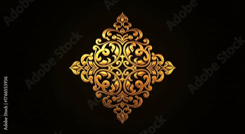 Golden Ornate Design on Black Background - Intricate Pattern.